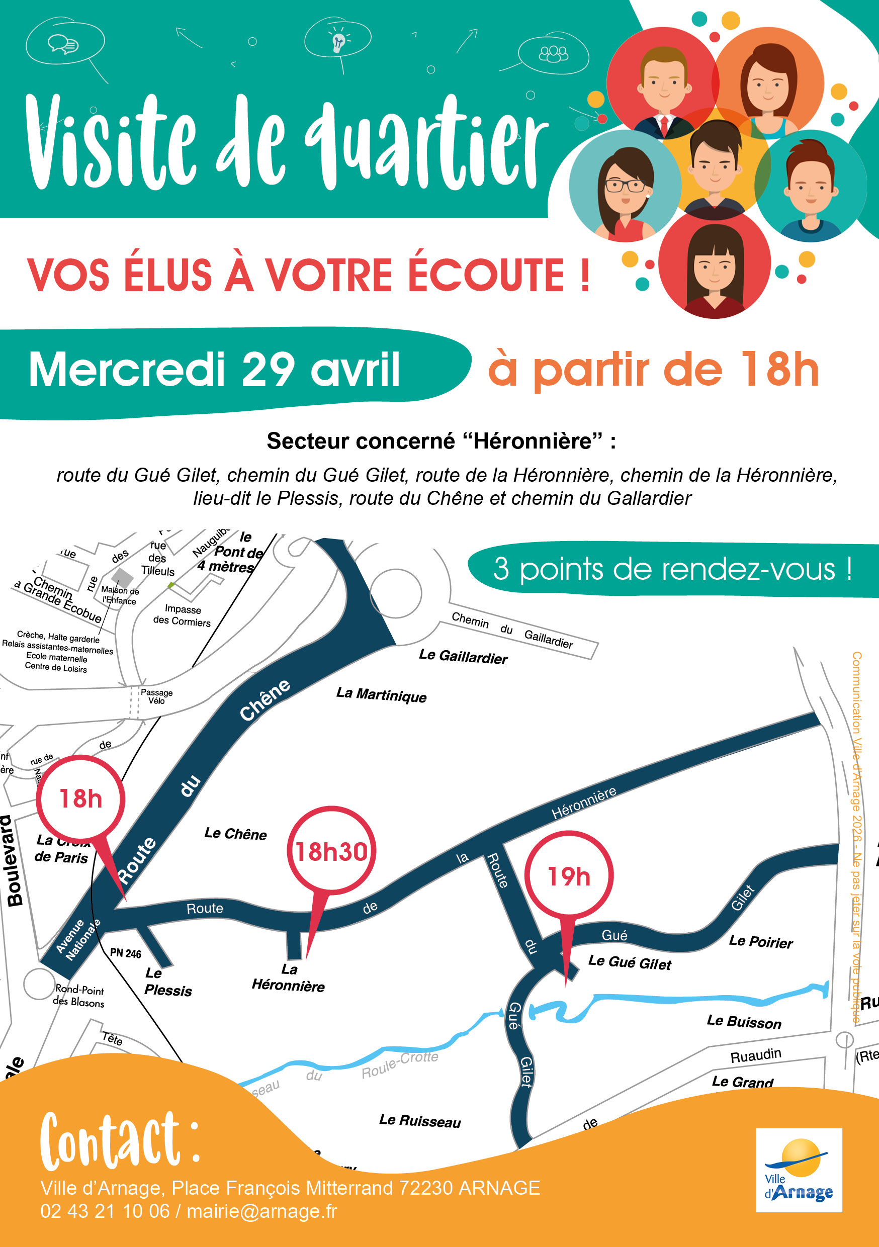 Les rues concernées : route du Gué Gilet, chemin du Gué Gilet, route de la Héronnière, chemin de la Héronnière, lieu-dit le Plessis, route du Chêne et chemin du Gallardier